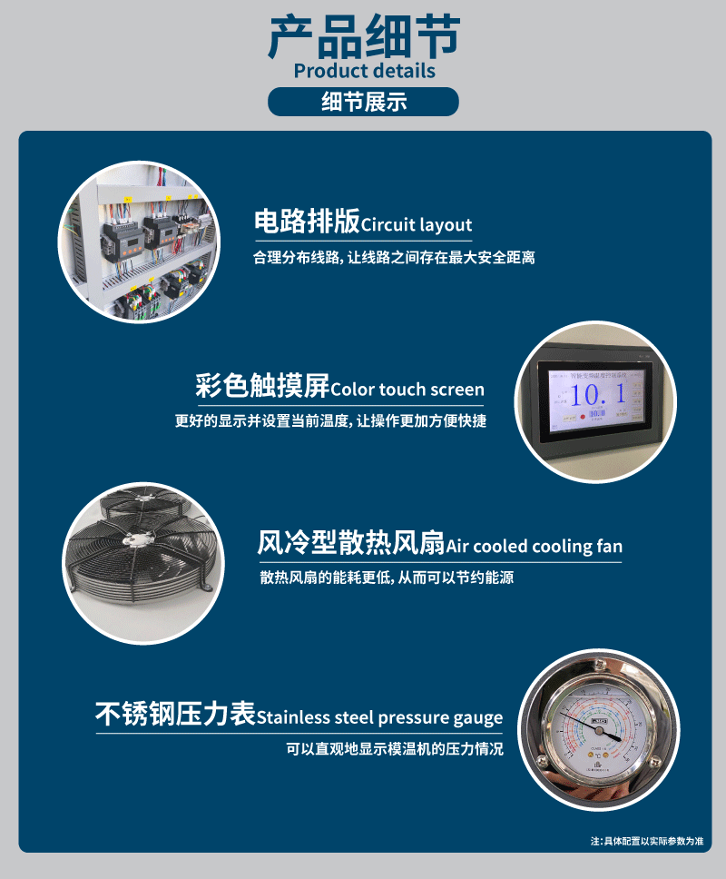 工業冷水機是一種廣泛應用于工業生產過程中的設備,用于提供穩定的冷卻水供應。它具有高效、節能、穩定性好等特點,可以應對各種工業領域對冷卻水的需求。工業冷水機可用于冷卻設備、機械加工、注塑成型等多個應用場景。想了解更多關于工業冷水機的詳情,請訪問本頁面。