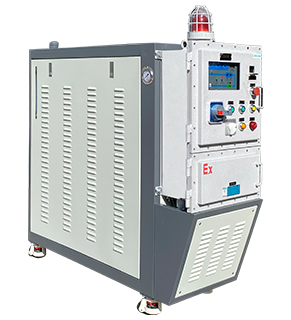防爆模溫機主要由加熱系統、制冷系統、溫度控制系統和循環系統組成。加熱系統通過加熱元件(如電加熱管或加熱器)提供熱量,使模具升溫。制冷系統通過制冷劑循環來吸收熱量,使模具降溫。溫度控制系統則通過傳感器感知溫度,并通過控制器來調節加熱或制冷系統的工作,以達到設定的溫度。循環系統則負責循環加熱或制冷介質(如水或油),使其通過模具,完成溫度傳遞。