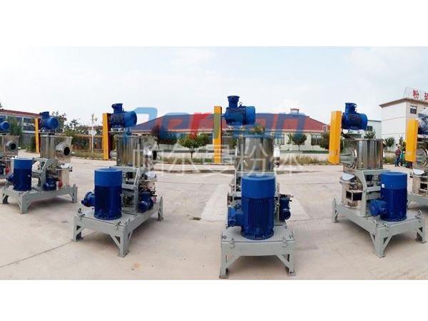 此流程中碳酸氫鈉從原料倉通過變頻螺旋輸送機定量的供給下游的CAM-H系列空氣研磨機。所需的吸附劑的量可由脫硫前后的污染物濃度趨勢曲線計算。在螺旋輸送機和研磨機之間安裝旋轉閥,用于隔離氣流,以免氣流影響螺旋輸送機的定量進料。碳酸氫鈉在分級磨中進行研磨后,細粉由一臺物料輸送風機輸送至煙氣管道。