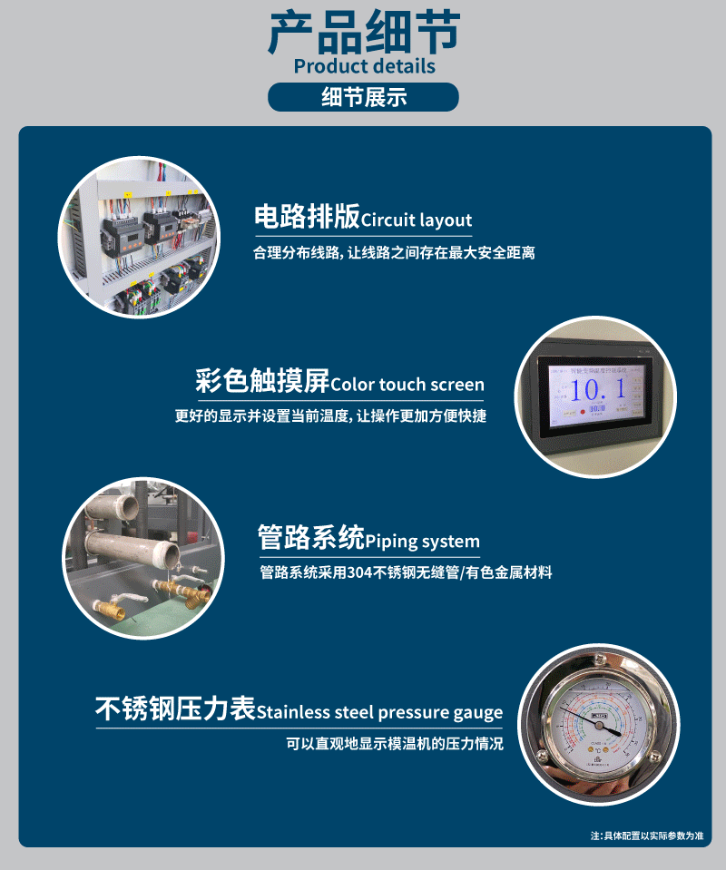 油溫機廣泛應用于工業生產中的加熱和冷卻過程,例如塑料注射成型、涂料生產、化工過程等。它可以提高生產效率和產品質量,同時也具有節能、環保和安全的特點。